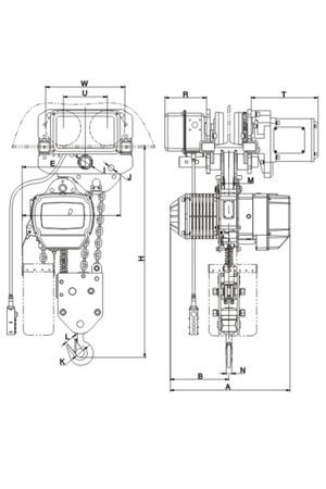 | 掛板式環(huán)鏈電動葫蘆(7.5T-50T) 尺寸參考: | ||||||||