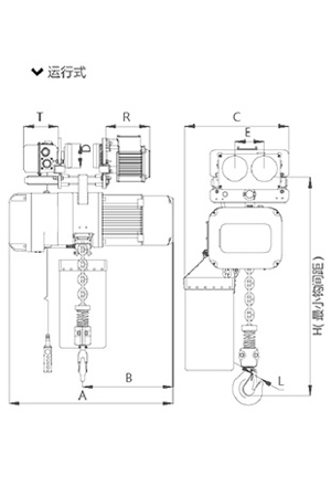 | 運行式環鏈電動葫蘆0.25T-5T尺寸參數 | |||||||||